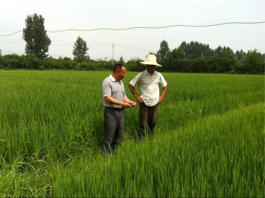 入夏以來,成都華宏生態(tài)農(nóng)業(yè)科技有限公司總經(jīng)理李智強先后趕往四川鹽源縣、甘肅張掖市等地方,前幾天(2014年7月7日)又應(yīng)湖北省孝南區(qū)農(nóng)業(yè)局的邀請,帶領(lǐng)公司技術(shù)員趕到該地察看連續(xù)3年公司生產(chǎn)的“施地佳”土壤調(diào)理劑在水稻上的試驗示范情況。在孝南區(qū)農(nóng)業(yè)局劉春清局長和農(nóng)業(yè)局土肥站陶小娥站長的陪同下,頂著酷暑,親臨試驗地察看和訪問,其心可見,其情可嘉。不辭辛勞為哪般,只為土壤改良作貢獻(xiàn)!